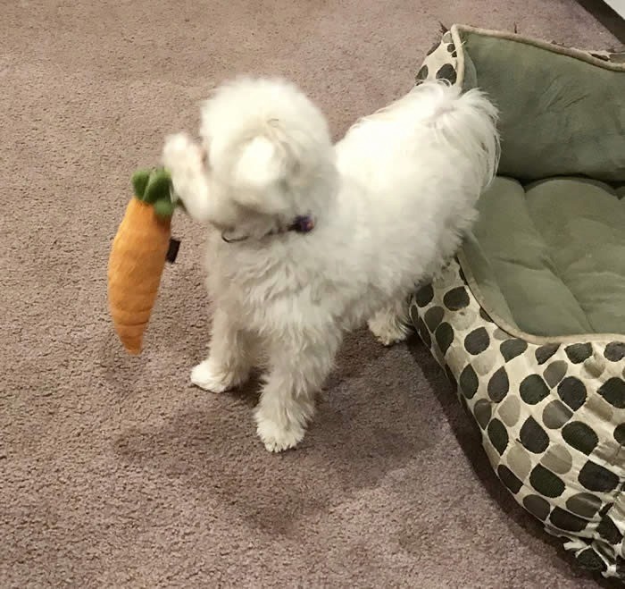 We have a zillion (or says my husband!) dog toys, balls and dog beds and plenty of dog treats so let me know if your pup is on a restricted diet please!