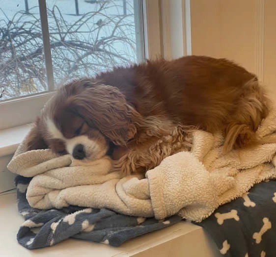 Of course Cavalier King Charles Spaniels are my first love but over the years we’ve had many different breeds of dogs that became family to us (a Black Lab, Jack Russell Terrier and an amazing Greyhound!)